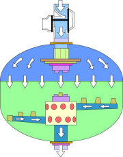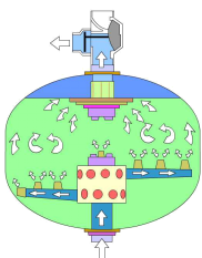 當(dāng)系統(tǒng)處于過濾狀態(tài)時,未經(jīng)過濾的水通過上部的布水器,配合球形外殼,以接近平流的狀態(tài)到達過濾器內(nèi)的填料層。當(dāng)水流過填料層時,雜質(zhì)被截留在填料層。過濾器底部的收集器將過濾后的水均勻地收集并流出。平流過濾,決定了過濾器在高的流速下,仍可達到良好的過濾效果。